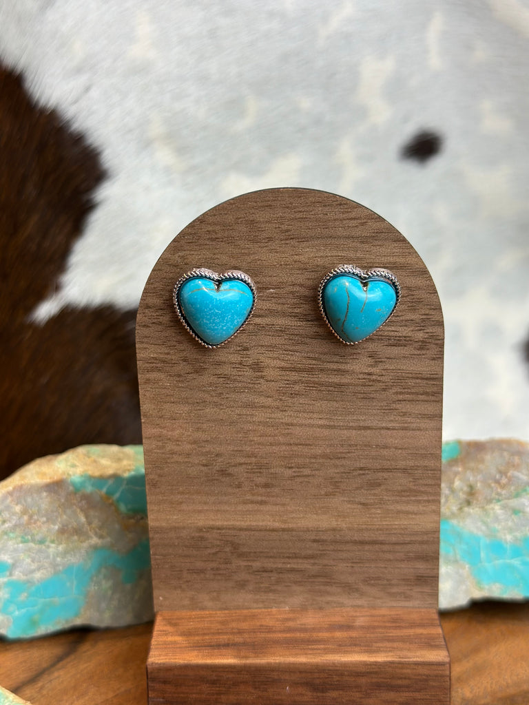 HEART FAUX TURQUOISE STUD EARRINGS