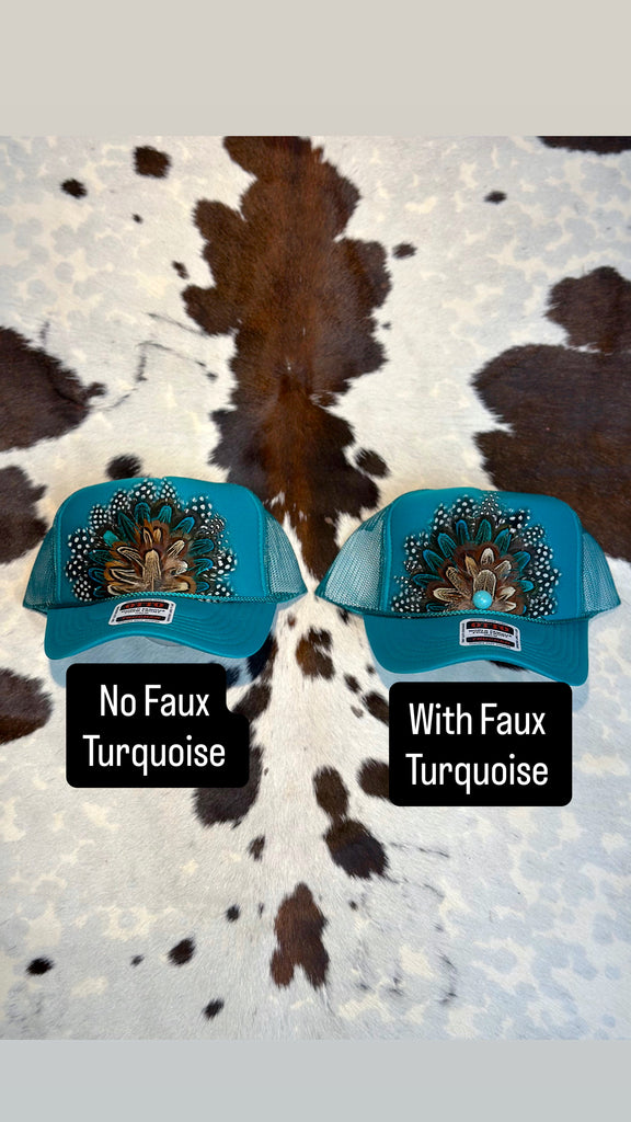 TEAL FEATHER TRUCKER HAT